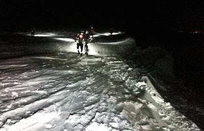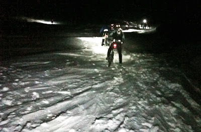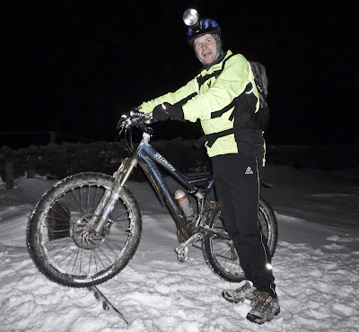 Clear Still & Cold, 5ft snow drifts on the tops & Bowstones access rd (see photo above), crust not holding bikes.