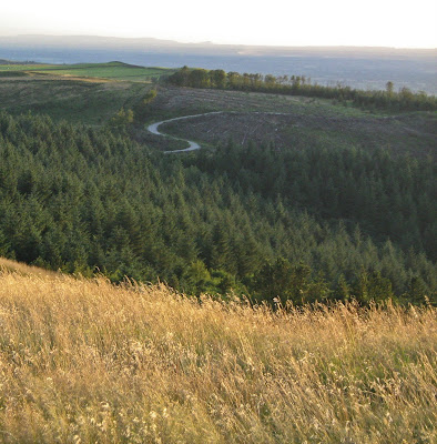 Chatty lady cyclist, Horses on bridleway, trail bikes & bilberry collectors.